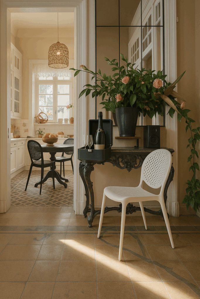 - Ανοιχτούς χώρους καθιστικού που οδηγούν σε ηλιόλουστη βεράντα.