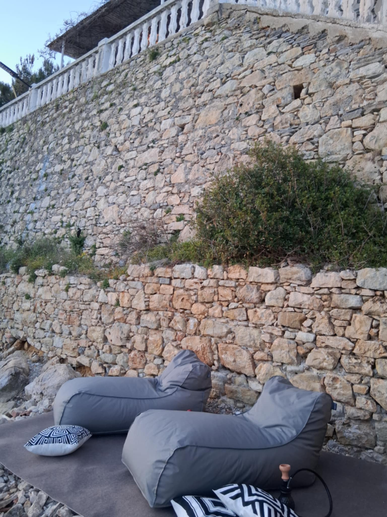 Κατεβαίνοντας μόλις 10 σκαλιά, θα βρείτε το ιδιωτικό σας deck με ξαπλώστρες, όπου μπορείτε να απολαύσετε τον ήλιο, τη θάλασσα και την απόλυτη ηρεμία. Ζήστε το ατελείωτο ελληνικό καλοκαίρι όπως το έχετε ονειρευτεί.